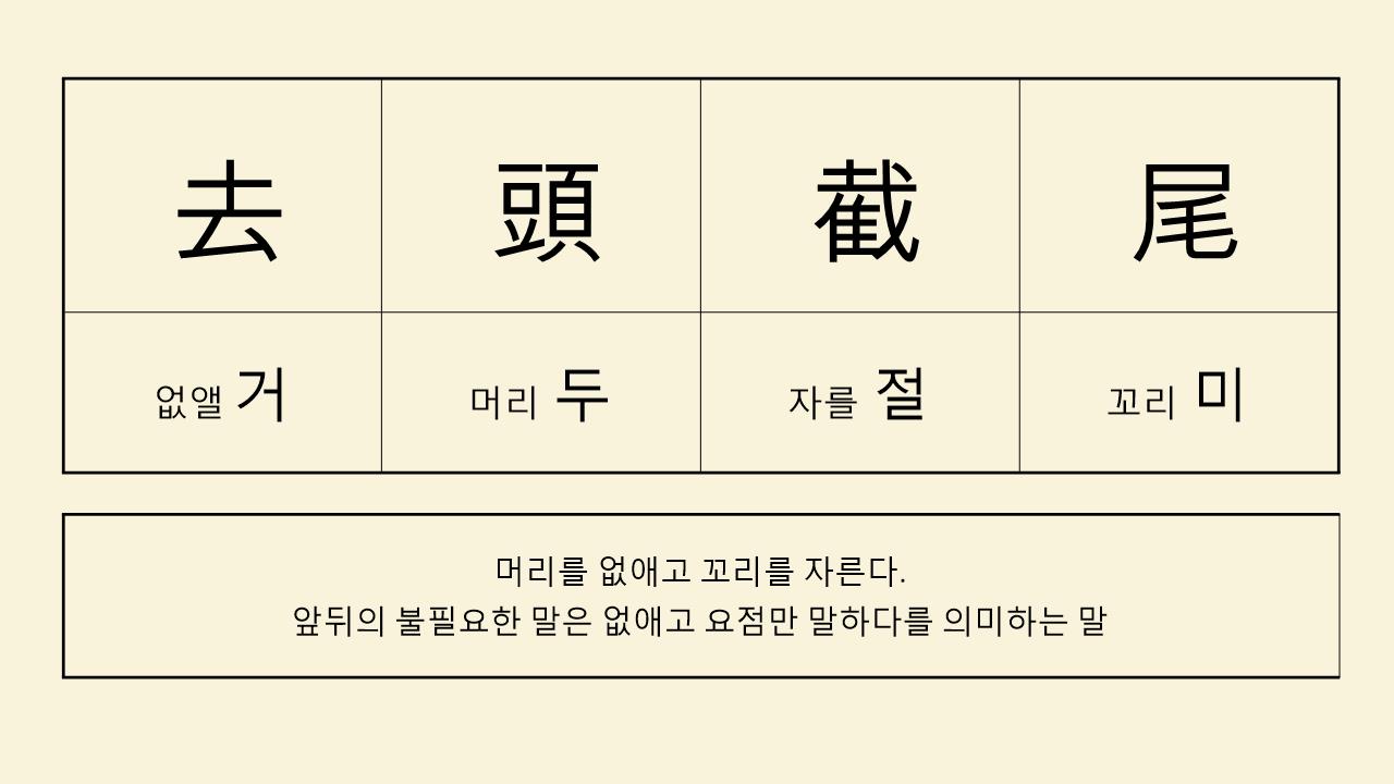 따라서 말을 할 때 핵심이 되는 요소만 골라 짧고 정확하게 뜻을 전할 수 있다면, 금상첨화일 것입니다.거두절미 더 알아보기 대기만성