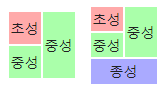 • 중성이 ㅏ, ㅐ, ㅑ, ㅒ, ㅓ, ㅔ, ㅕ, ㅖ, ㅣ일 때는 중성을 초성의 오른쪽에 붙여 쓴다.
