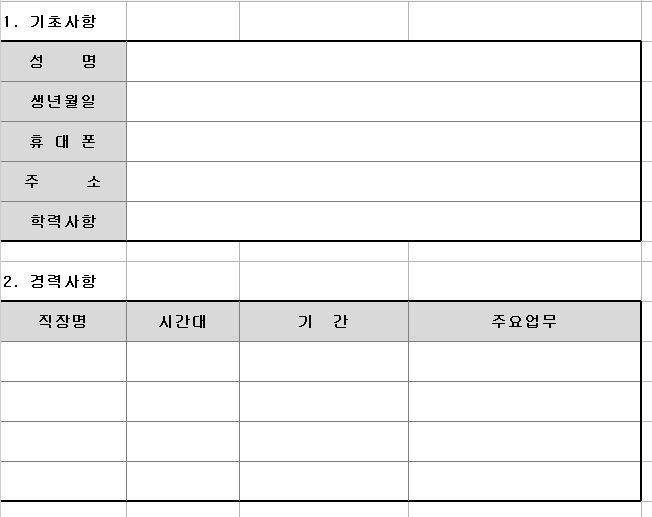 - [엑셀] 심플하고 면접에 필요한 내용을 적을 수 있는 간단한 아르바이트 양식