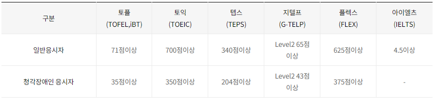 여기에 더하여 공인영어성적도 있어야 하고요.
